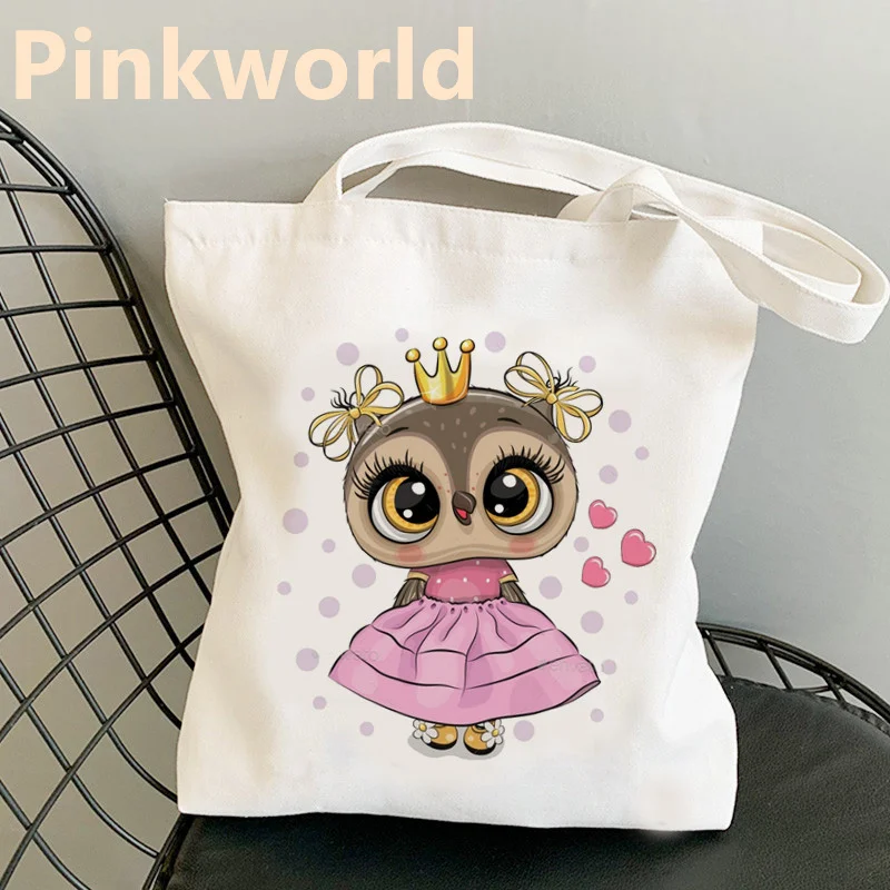 Bags Cute Owl New Tops Trend Printed Harajuku Cool Canvas Shopper Bag Shopper Black White Women Fashion shopper shoulder bag